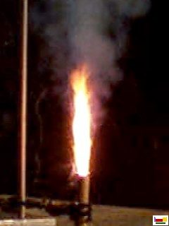 The picture above shows the colour arising from adding common salt (NaCl) to a burning mixture of potassium chlorate and sucrose.